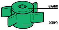 Costituito da un corpo di ancoraggio e da un grano di regolazione entrambi filettati, viene fornito con il grano completamente avvitato sul corpo pronto per essere calettato sul profilo.